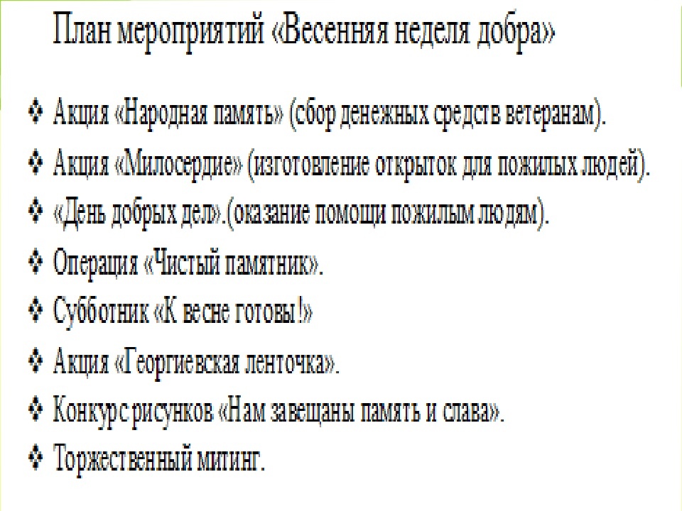 День добрых дел план мероприятий 99 фото