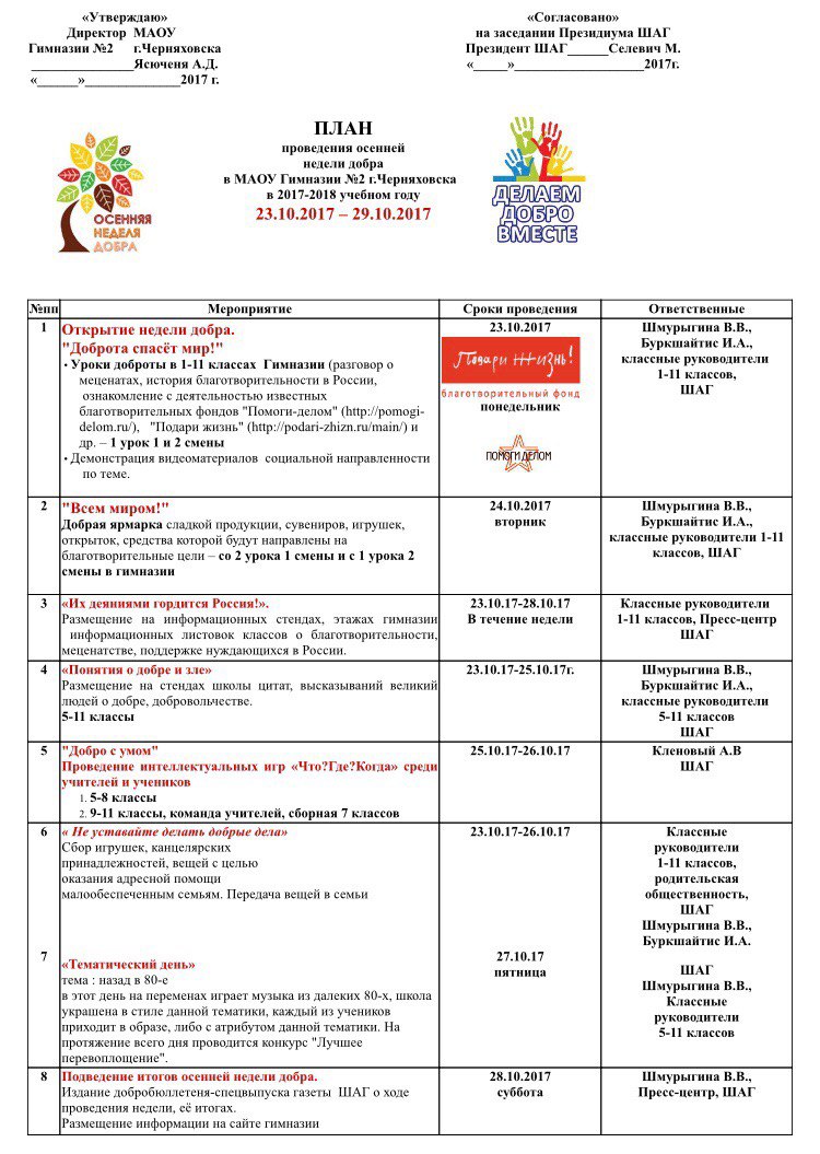 День добрых дел план мероприятий