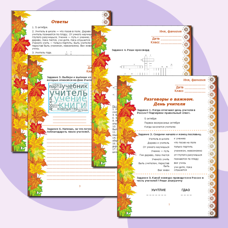 День учителя рабочий лист 7 класс