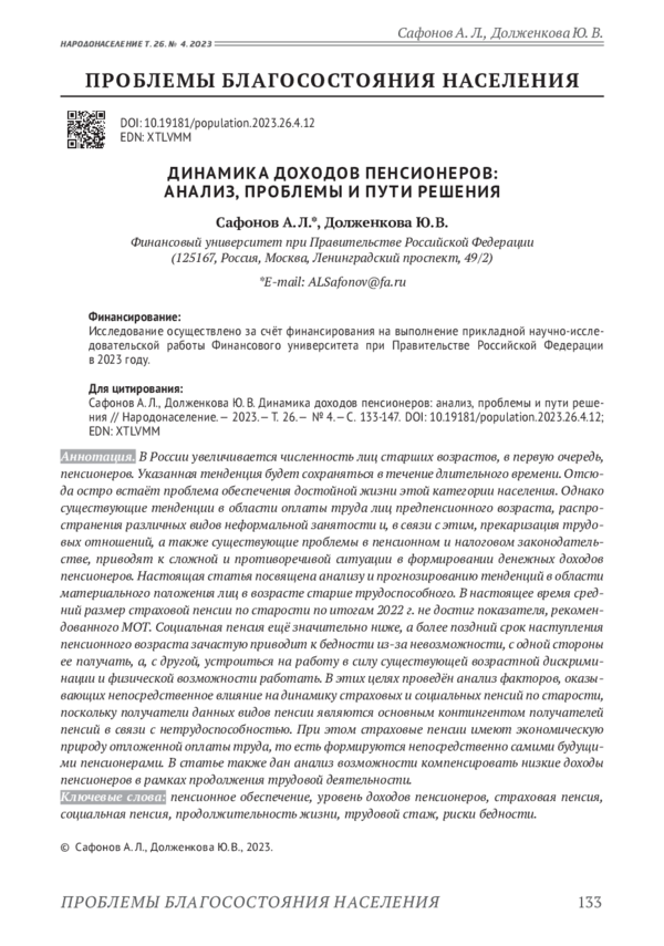 Денежный доход пенсионеров