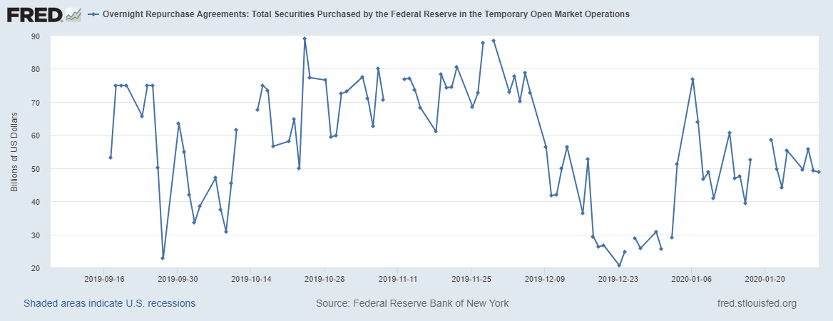 Дневные объемы сделок РЕПО находятся примерно на среднем уровне.