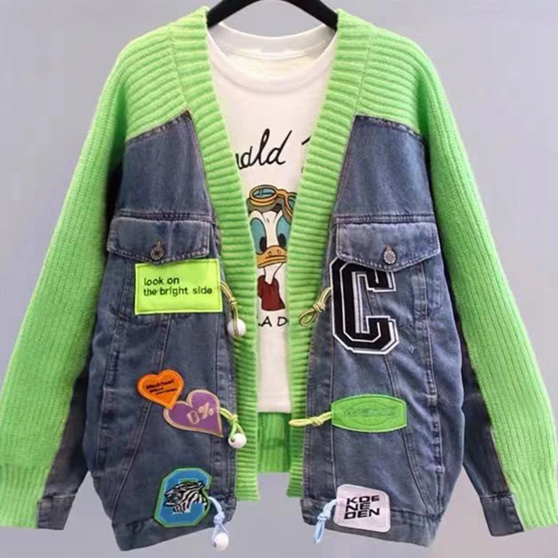 hEhlaOLRQДолго искали Denim Patchwork Women Sweater Cardigans Autumn Winter New Loose Knit Cardigan Female Jacket Cardigan Jacket Sweater Female Coat, но не могли найти? Предоставляем вашему вниманию Denim Patchwork Women Sweater Cardigans Autumn Winter New Loose Knit Cardigan Female Jacket Cardigan Jacket Sweater Female Coat по лучшей цене на рынке!