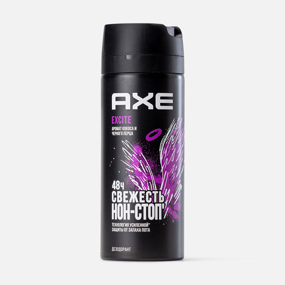 Karamel notaları ve tatlı fındık notaları içeren oryantal odunsu aromaya sahip AXITE EXCITE deodorant. . Giysilerde iz ve leke bırakmaz ve ter bezlerini engellemez, size gün boyu, her gün ve her durumda güven verir. AXE EXCITE ile tutkusunu uyandırın.