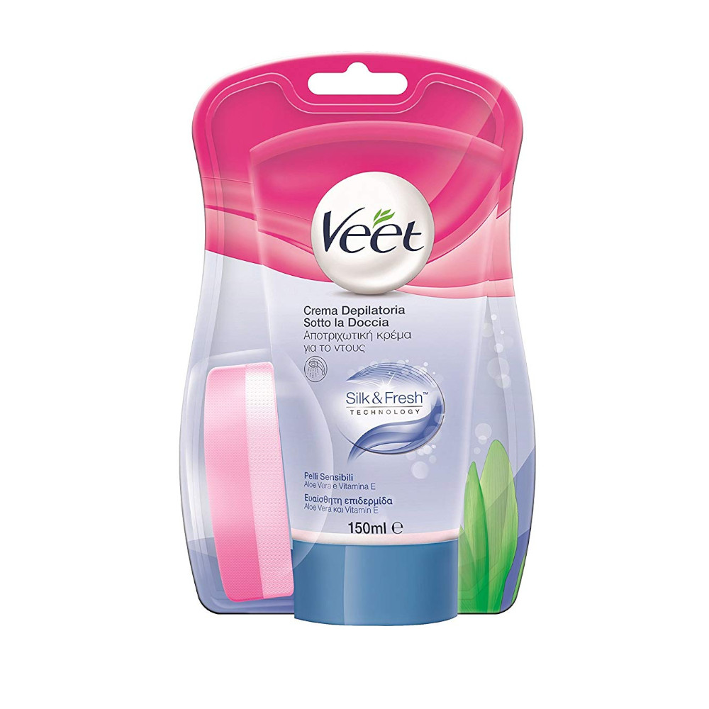 Depilarsi sotto la doccia Per rendere la depilazione ancora più semplice, Crema depilatoria Veet Sotto la doccia è stata pensata per venire incontro alla tua vita piena di impegni . Applicala subito prima di entrare nella doccia e, nel tempo che ti serve per lavarti i capelli, potrai dire addio ai peli superflui e goderti una pelle liscia e setosa: potrebbe essere più facile di così?