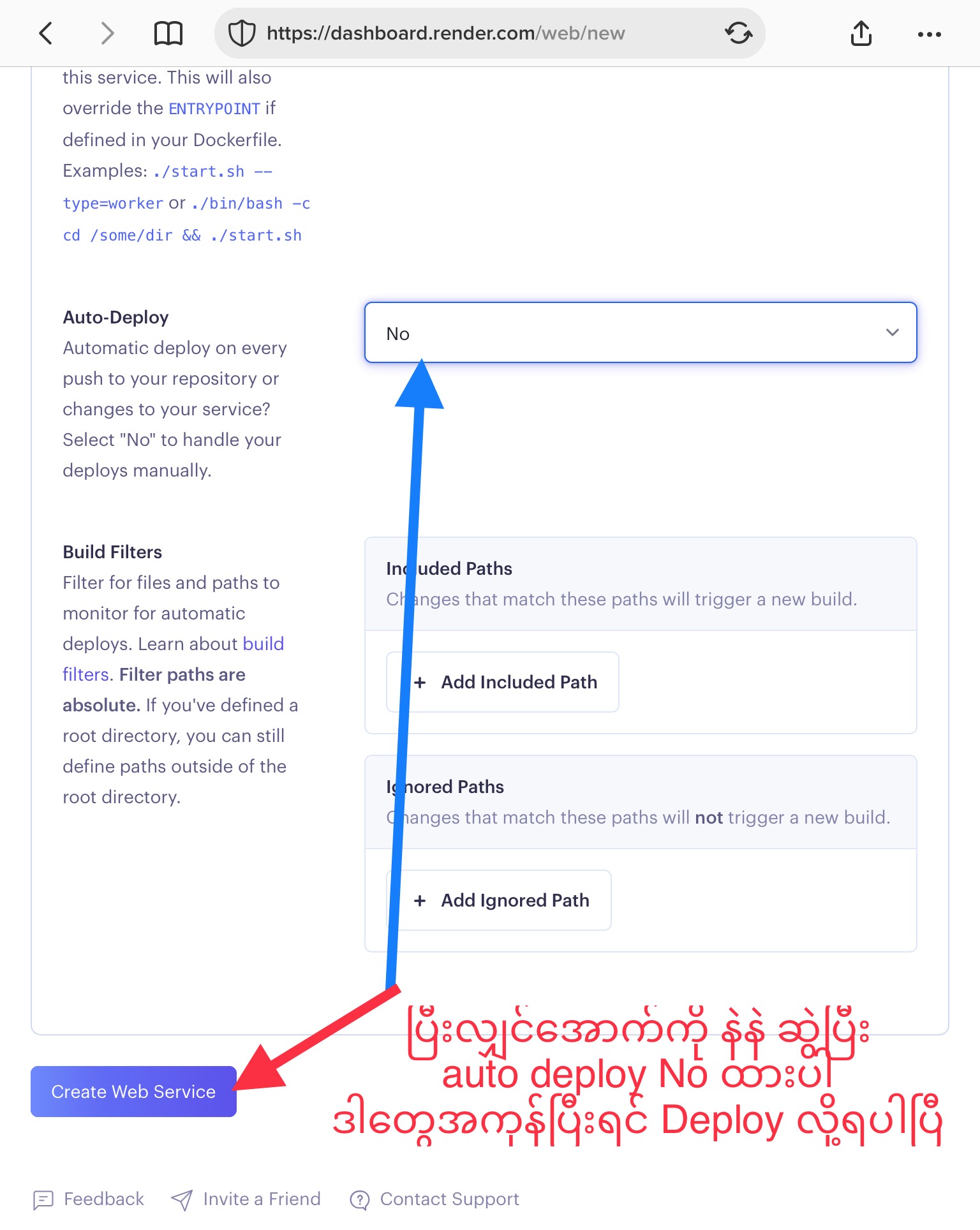 ပြီးရင် Save Changes လုပ်ပြီး အပေါ်ကပြောခဲ့သလို manual deploy ကနေ Deploy Latest Commit နှိပ် ရပါမယ်