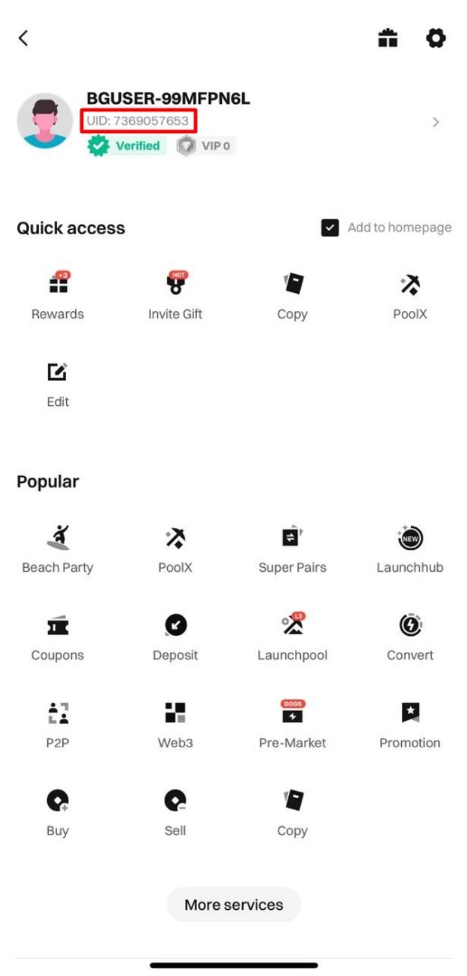 2. Your account details and UID will appear on the page.