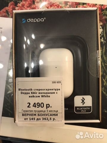 Full name Беспроводные наушники с микрофоном Air Buds, TWS, BT 5 .1, зарядный футляр 400 мАч,IPX4,черный, Deppa . The name of the color белый . Package width 9 .8 . HS code 8518309500 . Packaging height 2 .8 . The volume of the main cartridge 0 .0442 . Package depth 9 .8 . Shelf life 6 .