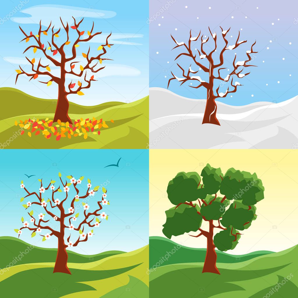 Дерево Зимой Весной Летом Осенью Картинки
