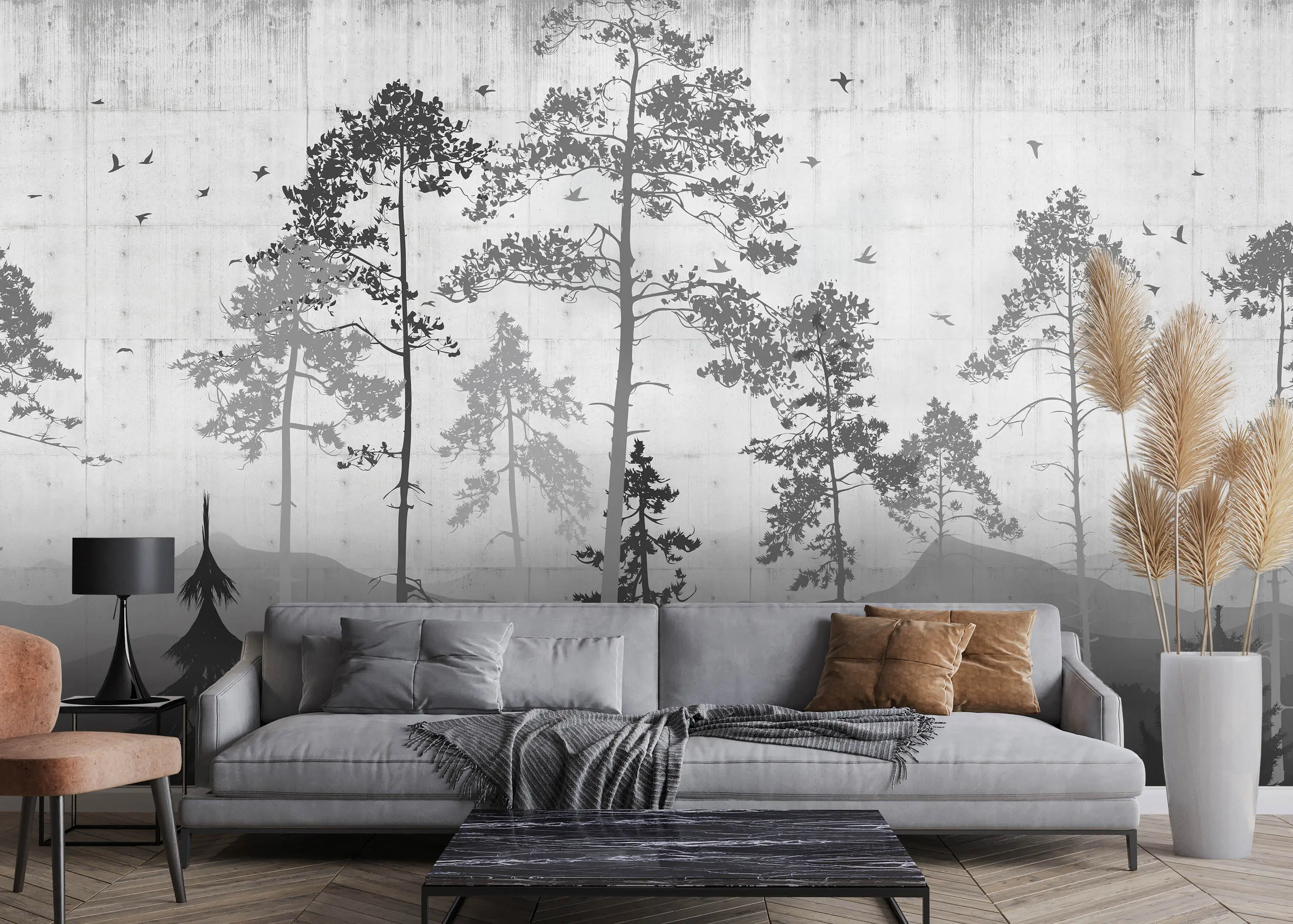 Дерево на серой стене