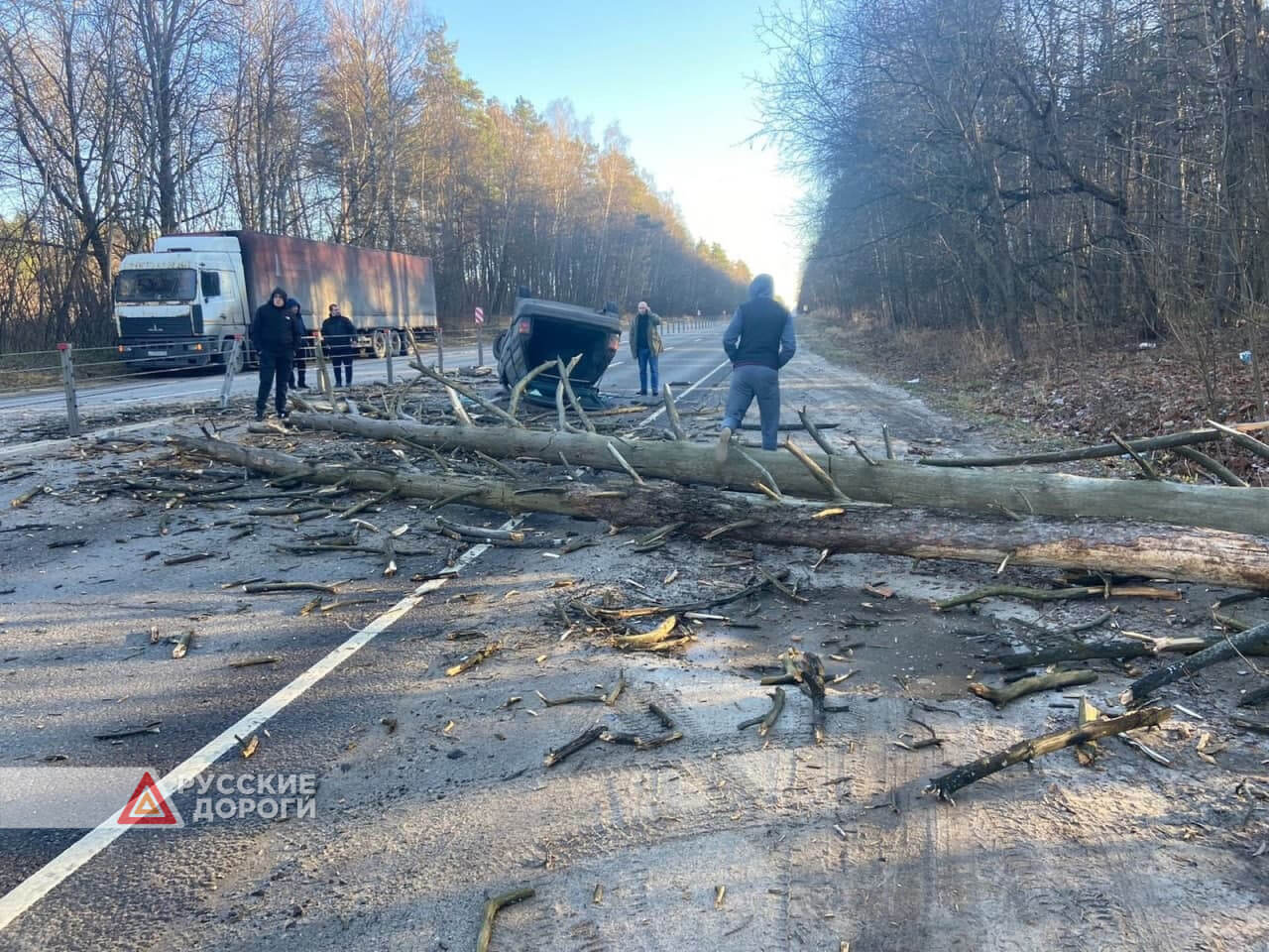 Дерево упало на трассе