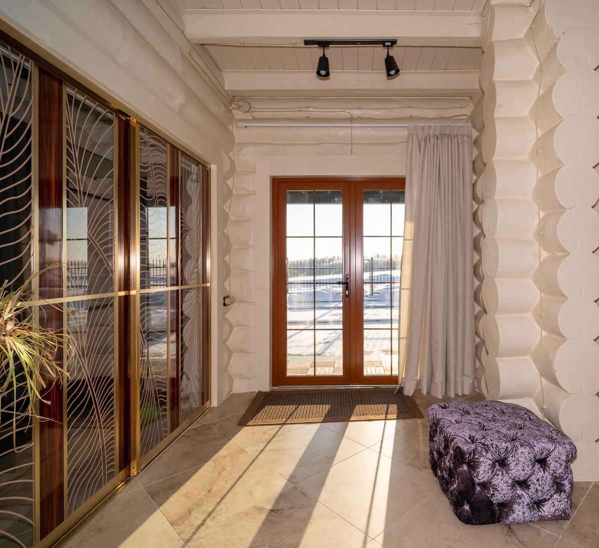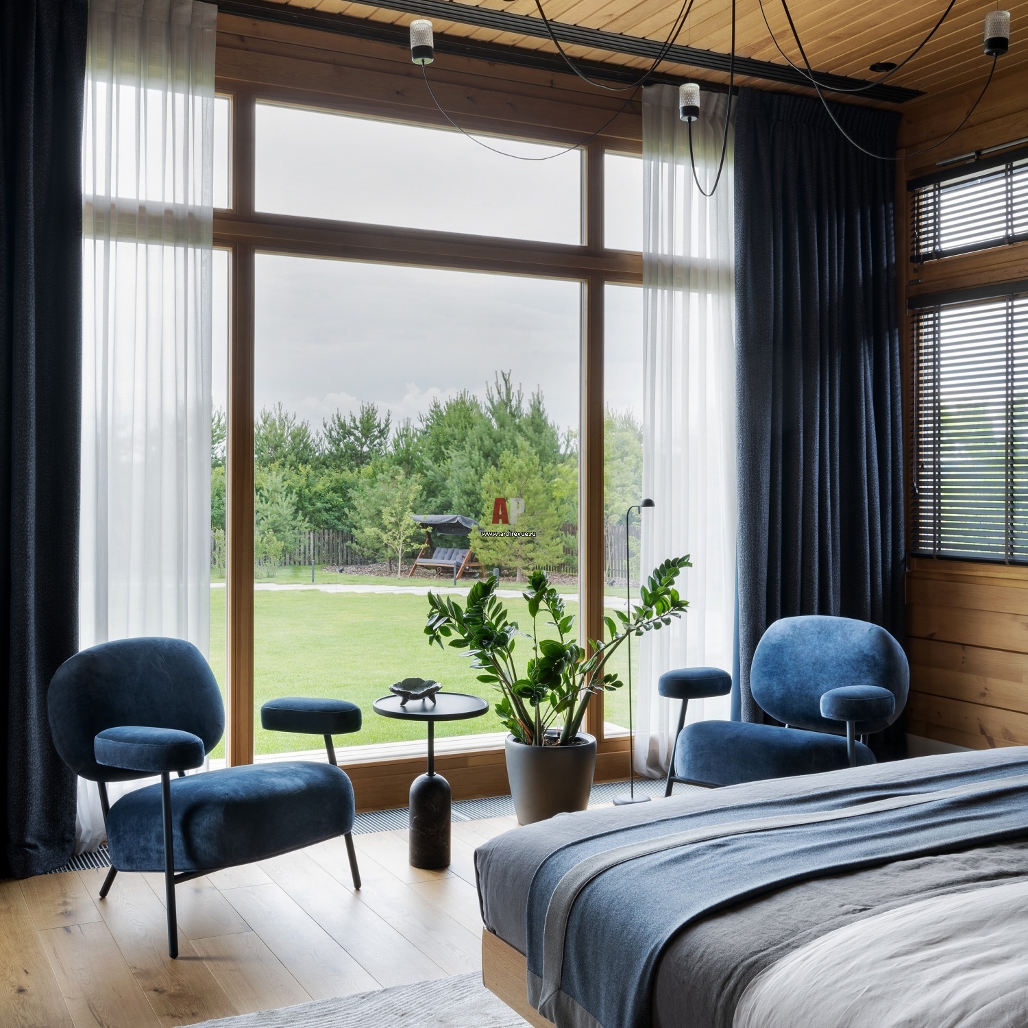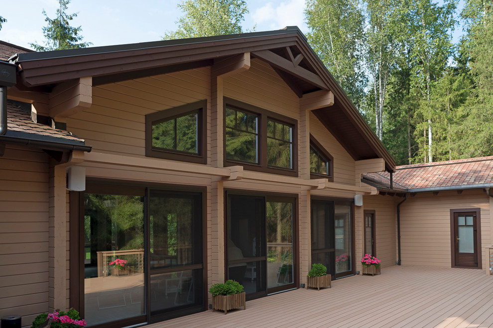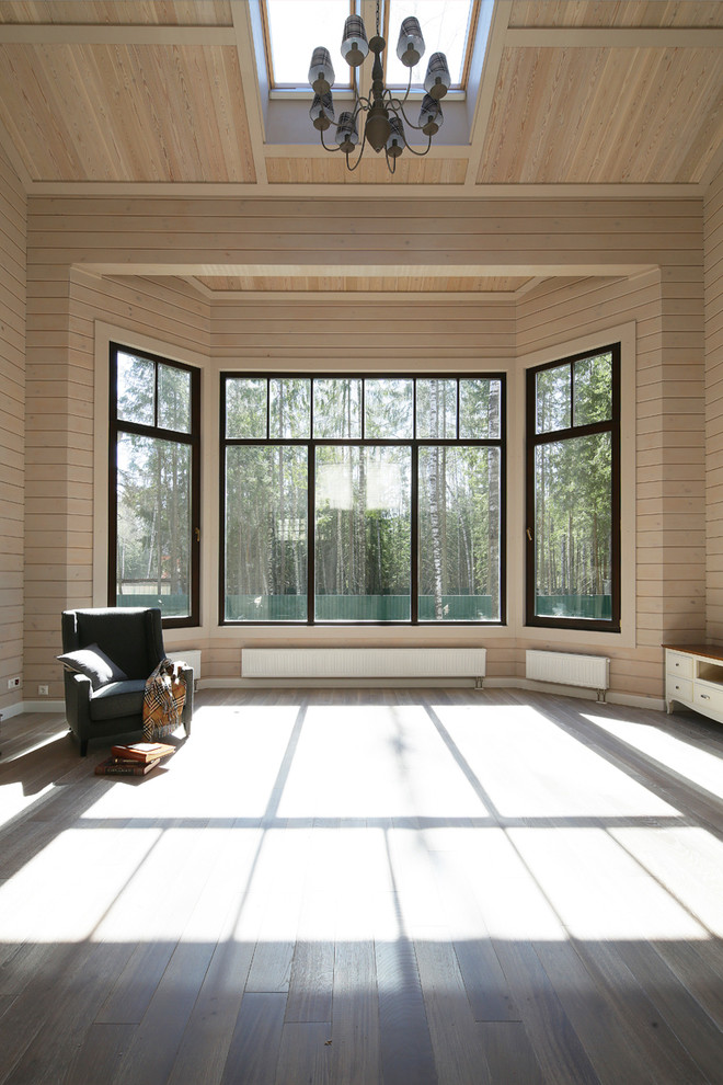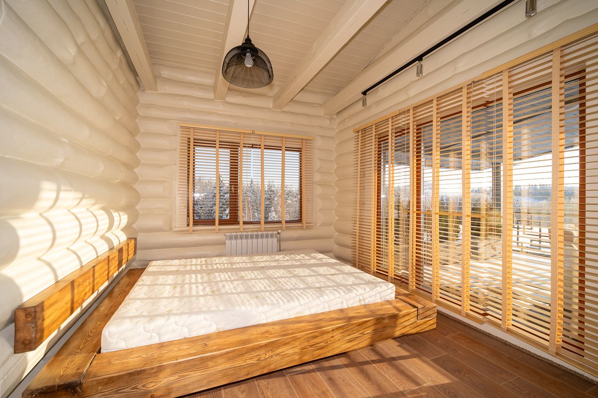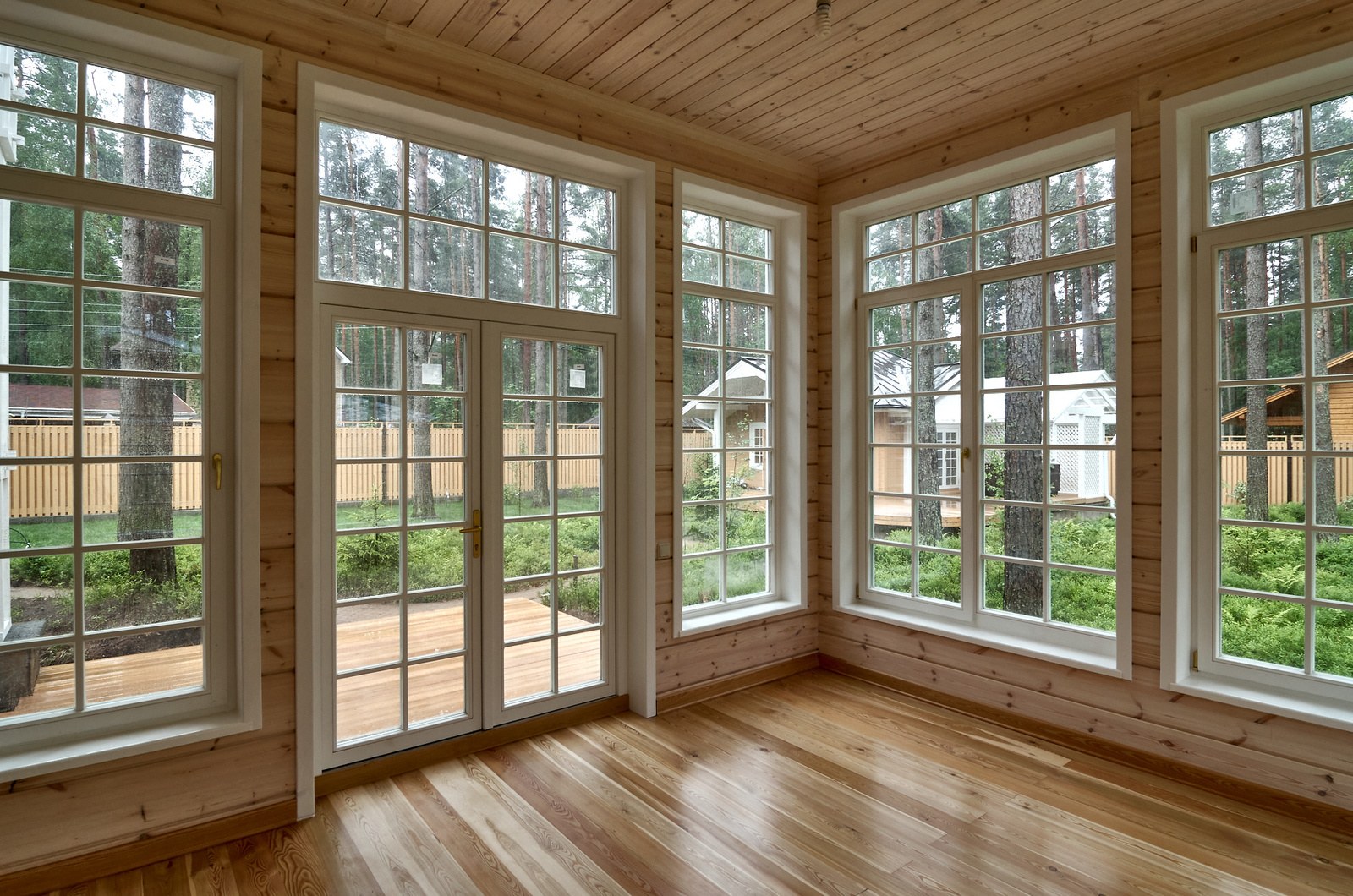 Деревянный дом окна в пол