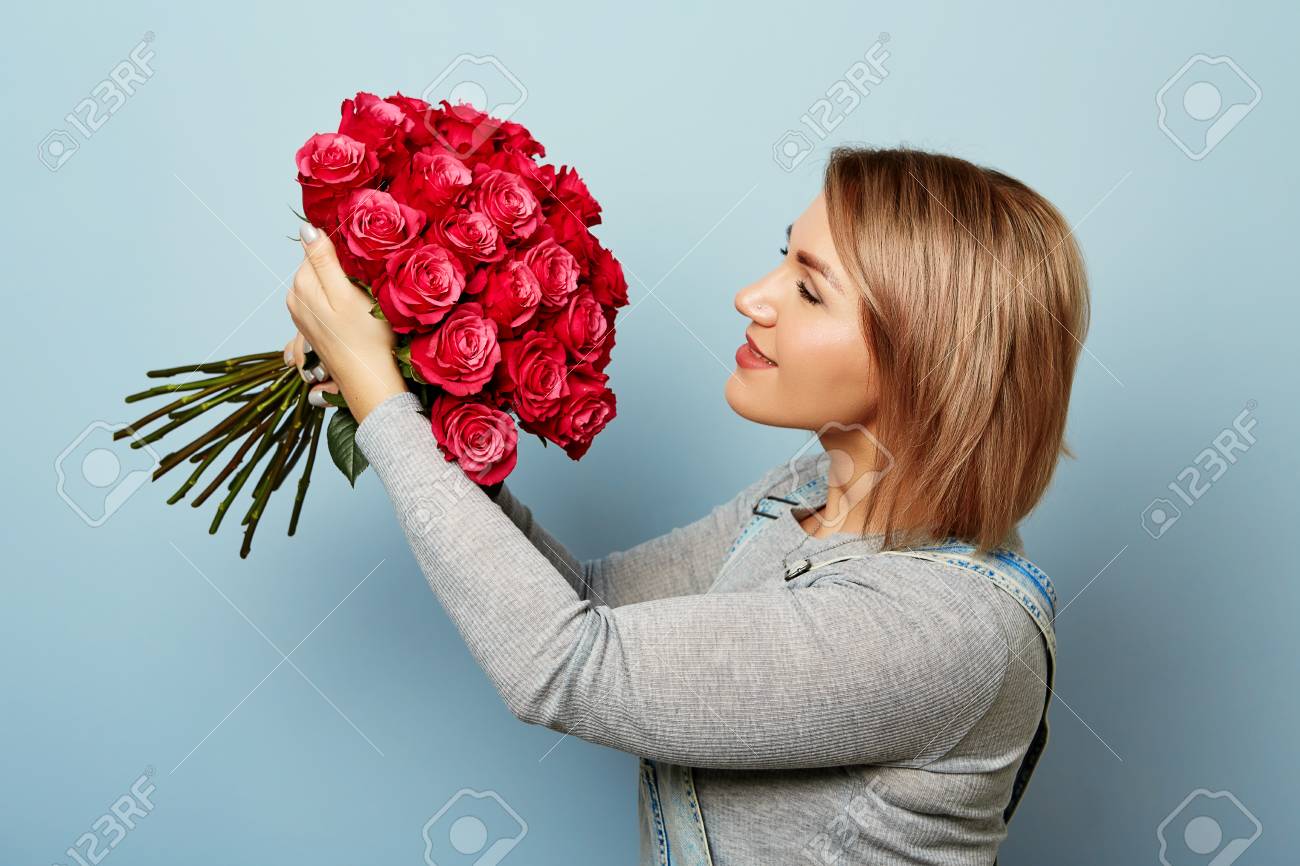 Держит Букет Роз Фото