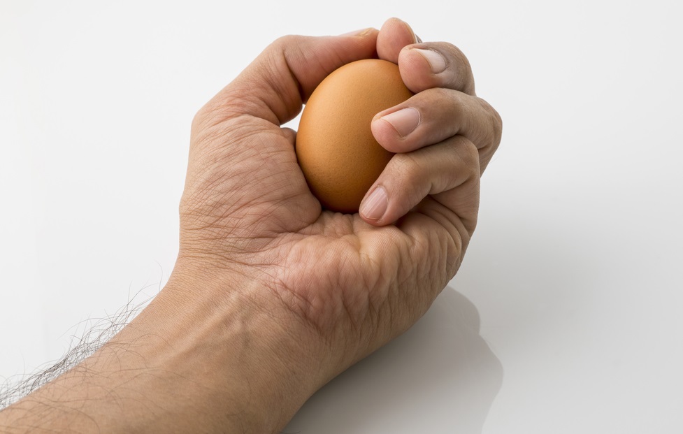 Держит яйца в кулаке