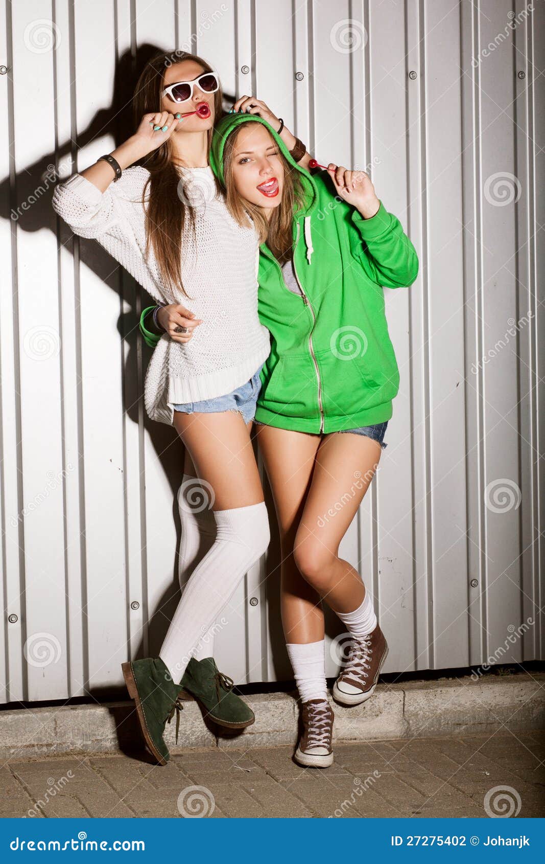 Jeune lécheuse tringlée contre un mur