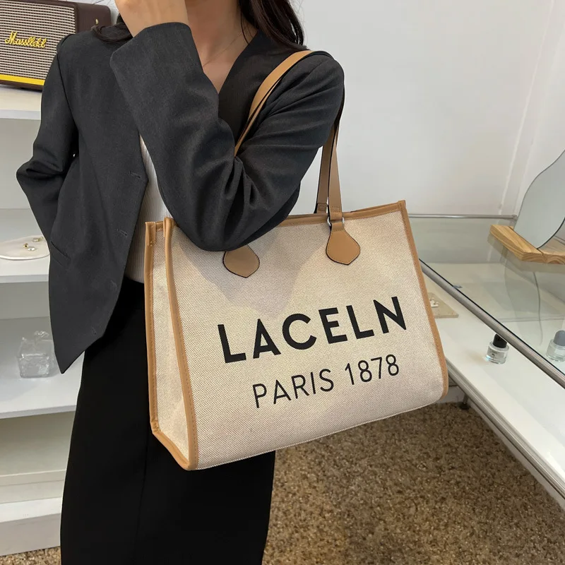 Womens Canvas Handbag Large Capacity Shoulder Bag Fashion Female Simple Designer Letter Printed Big Casual Tote Handle Bag po lu 10 07