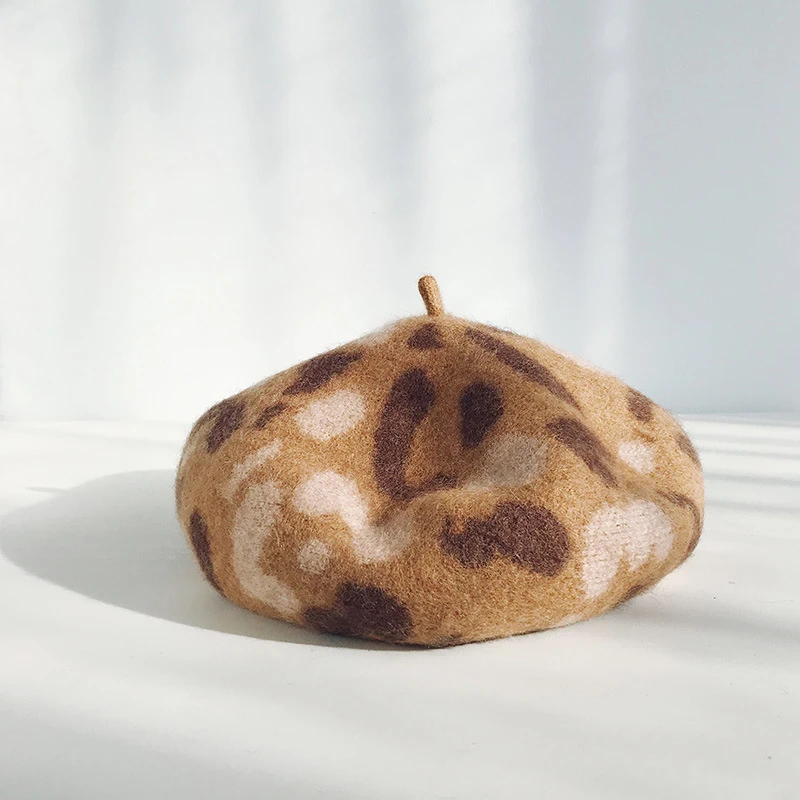 "Designer Women Winter Hat Wool British Style Vintage Berets Autumn Camel Leopard Print Knitting Artist Cap Painter Beanie Hat" * Buy Now Just For 10$