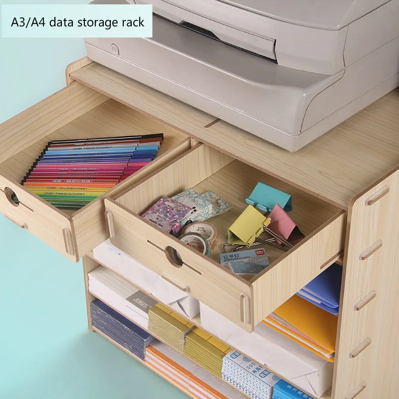 Desktop File Cabinet Multi-layer A3 Data Holder Creative Wooden A4 Data Folder Storage Rack with Drawer Multi-function File Rack - Купить с бесплатной доставкой