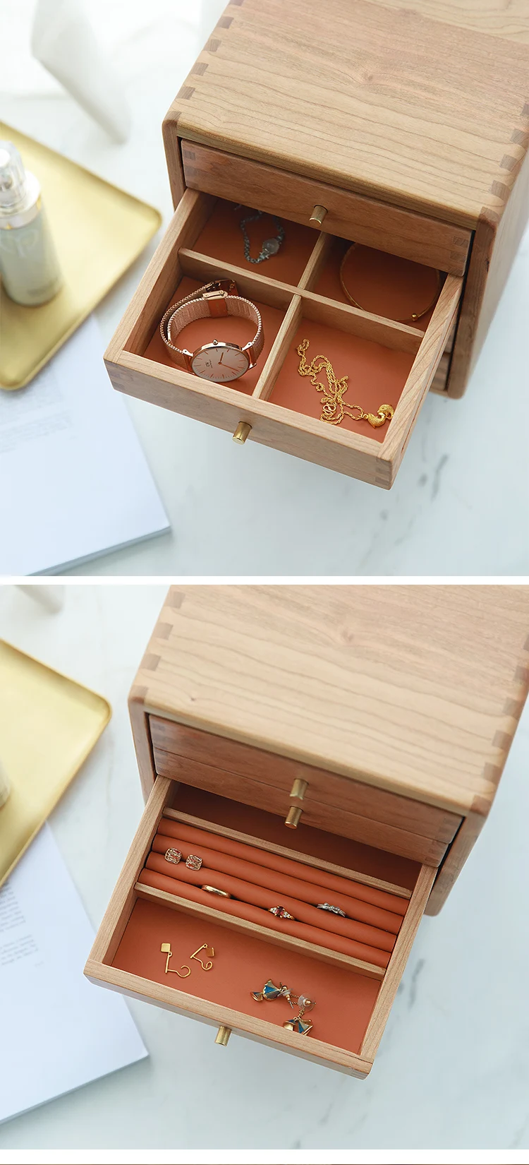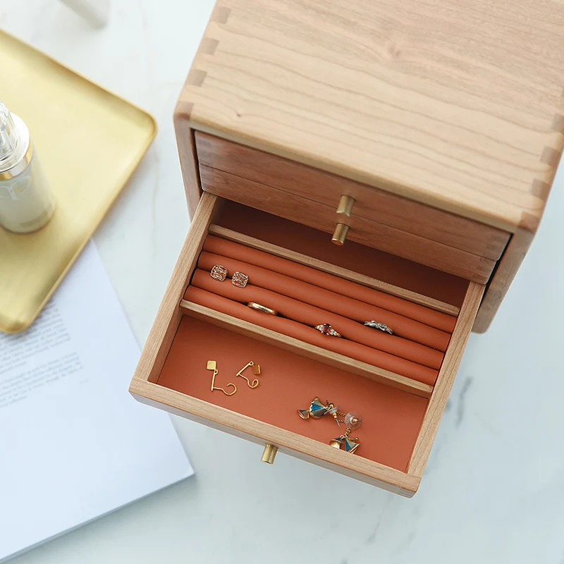 Desktop Large Capacity Multi-Layer Drawer Jewelry Box Solid Wood Dustproof Jewelry Box Korean Necklace Ring Earring Storage Box - Купить с бесплатной доставкой