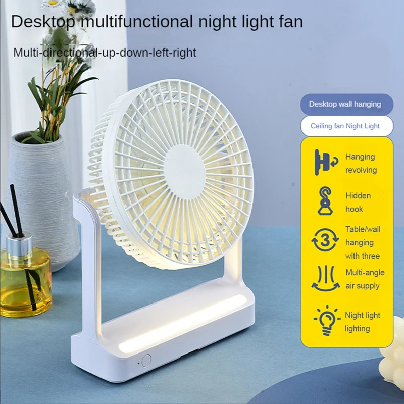 wrCliDfxHere you can buy Desktop Small Fan Rotating Shaking Head Wall Hanging Ceiling Fan Night Light Portable Mini Table Fan with free delivery to your post office.