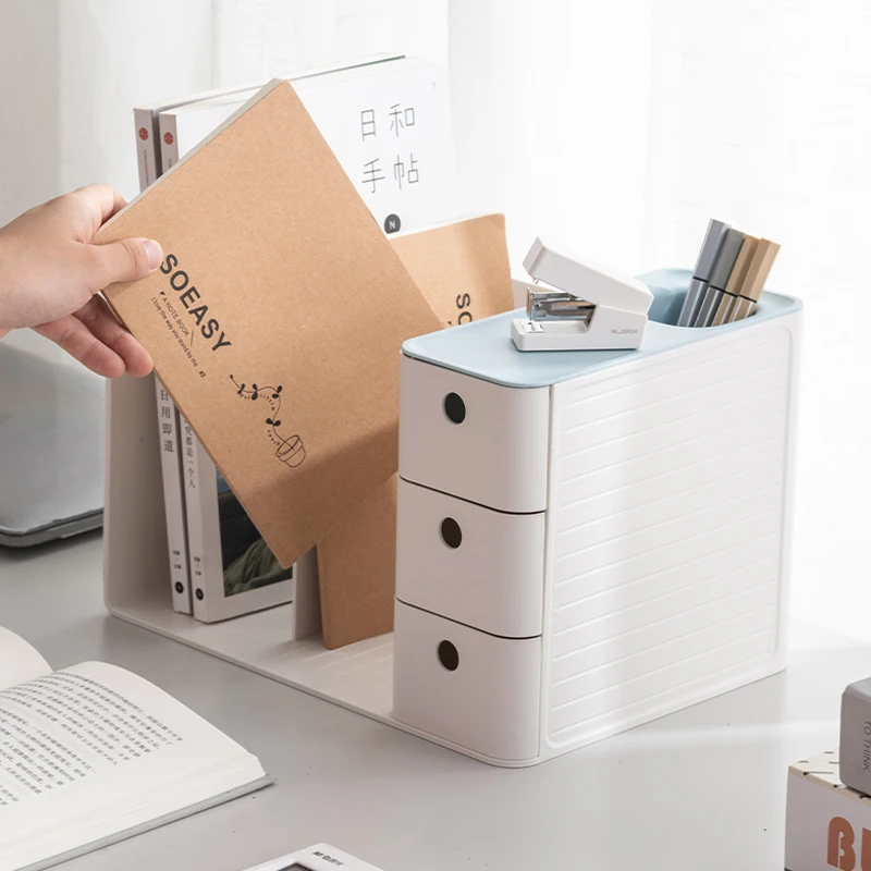 SMAzJuGqxHHere you can buy Desktop Storage Box,With Drawer & Pen Holder,Simple Student Stationery Office Storage Book Document Sorting Bookshelf Organizer with free delivery to your post office.