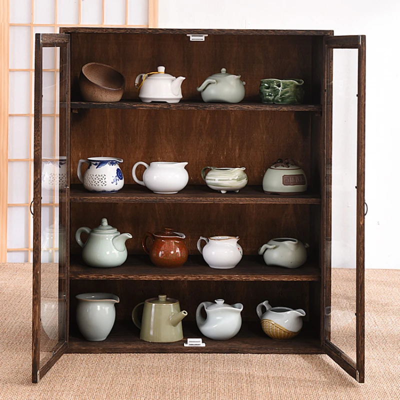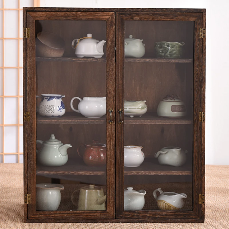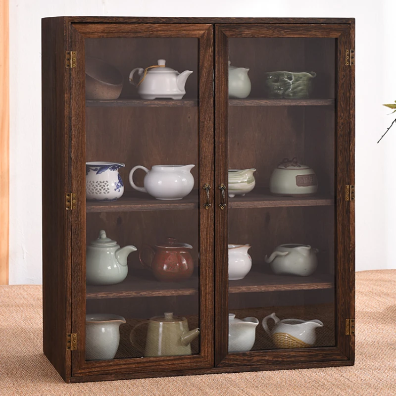 lAmGhHAxoMHere you can buy Desktop Tea Set Storage Shelf Dustproof Glass Cosmetics Display Cabinet Solid Wood Charcoal Baking Process Insect Prevention with free delivery to your post office.