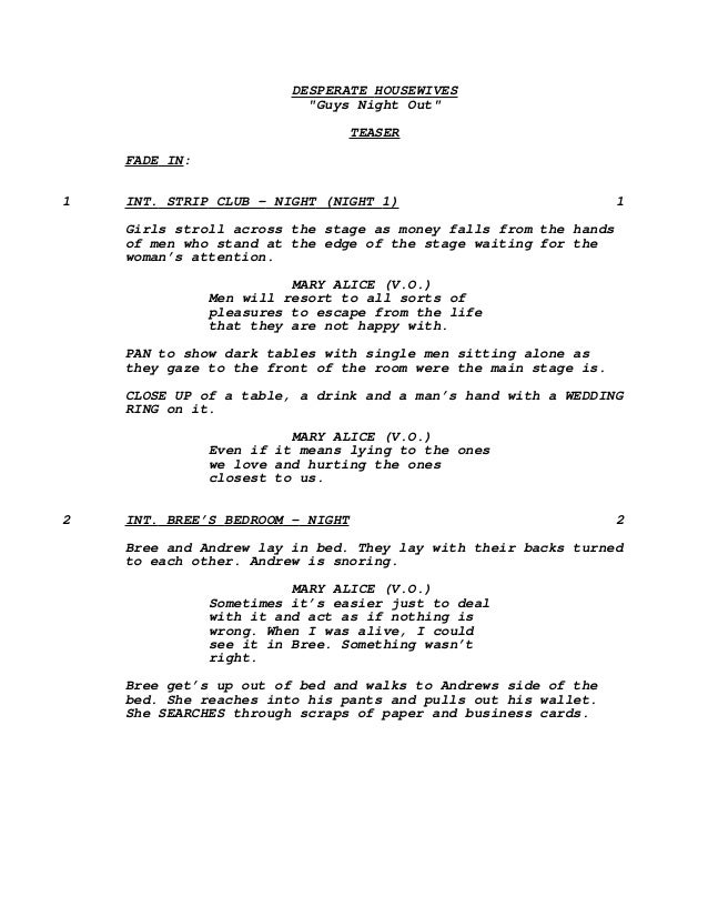 Desperate Housewives Script "Guys Night Out"