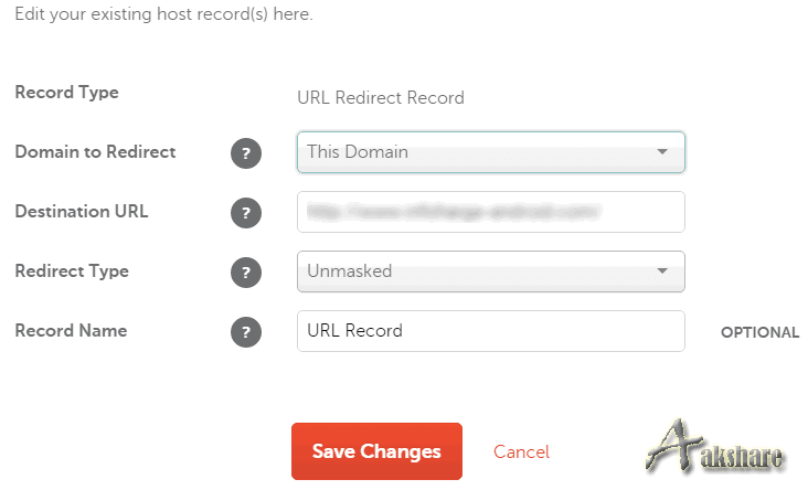 Destination url