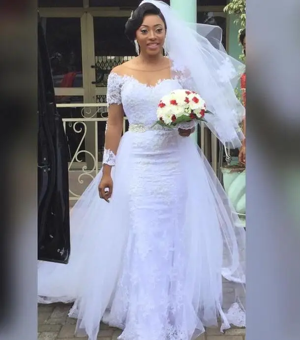 bPLbhzjhAДолго искали Detachable Trail 2 Pieces African Wedding Dresses White Lace Long Sleeve Beading Belt Mermaid Removable Skirt Bridal Gowns, но не могли найти? Предоставляем вашему вниманию Detachable Trail 2 Pieces African Wedding Dresses White Lace Long Sleeve Beading Belt Mermaid Removable Skirt Bridal Gowns по лучшей цене на рынке!