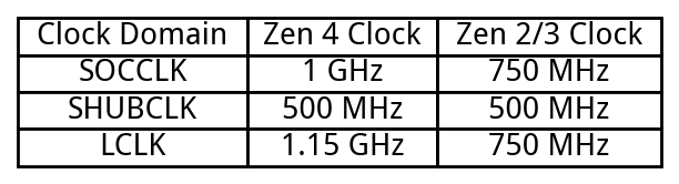 LCLK is the clock domain for the IO hub. Compared to Milan and Rome, Genoa sees a 53% LCLK frequency increase, and two IO hubs instead of one. That should greatly increase IO bandwidth.