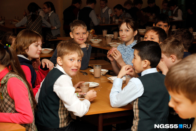 Дети обедают в школе