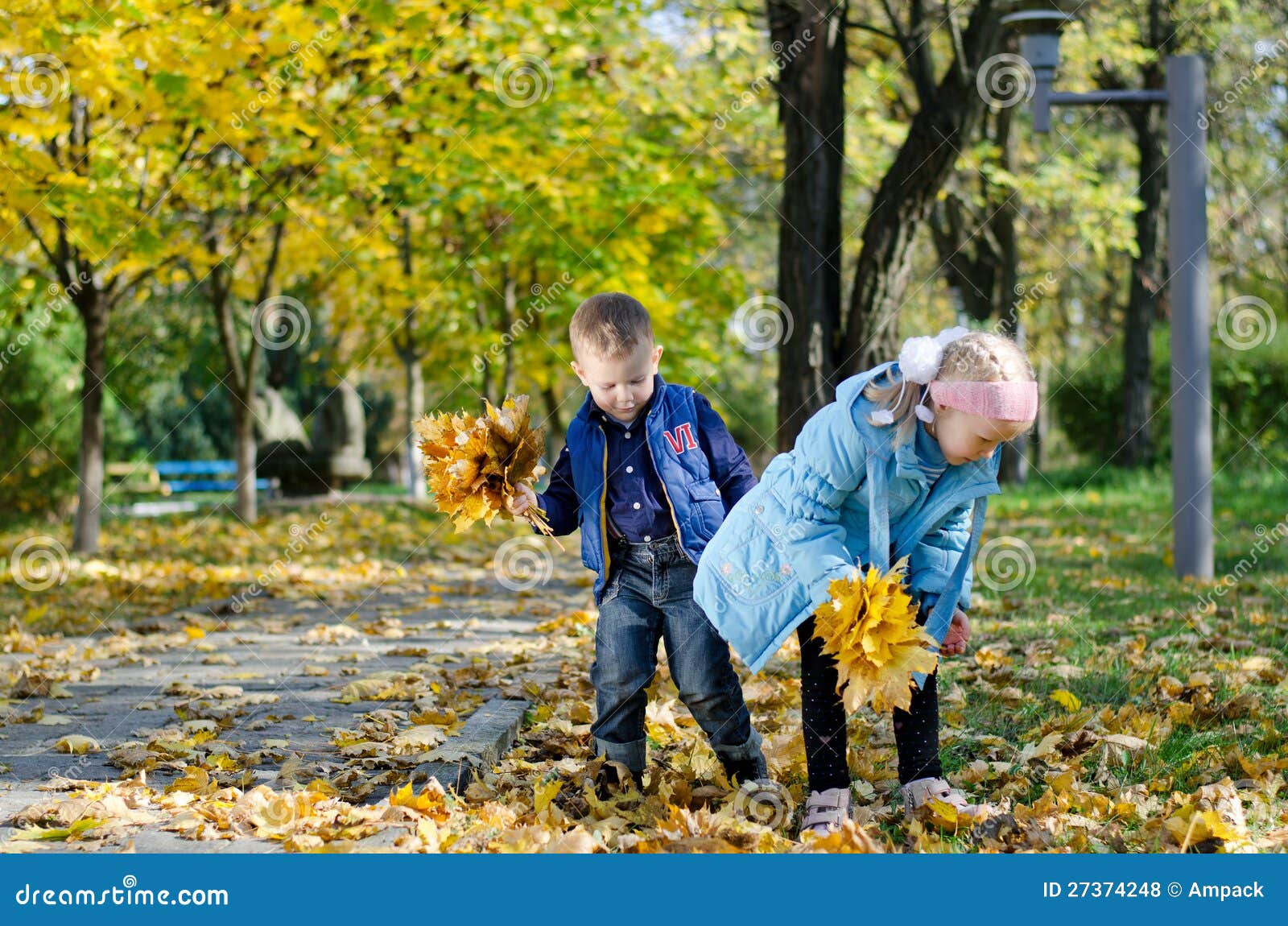 Дети собирают листочки
