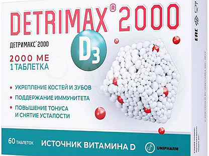 детримакс 2000 таб п/об 50мкг 2000ме 240мг n60 витамин d3 . . .