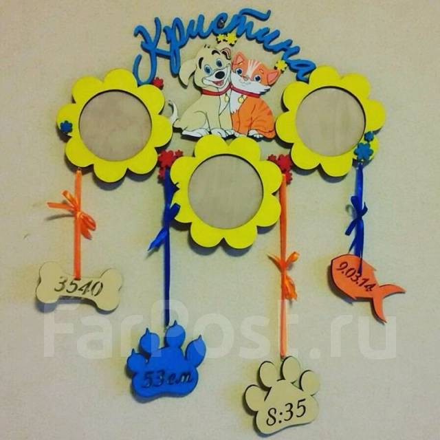 Материал: дерево Толщина материала: 6 и 10 мм Размер: 58*27 см Размер фото: 10*15 см Размер фигурок: 8-10 см Детские метрики исполняем за желанием заказчика . Покраска в комбинацию 2 цветов .