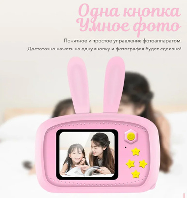 Детский цифровой фотоаппарат Зайчик, белый Описание Детский фотоаппарат Зайчик - это цифровая фотокамера для детей в виде зайчика с ушками с разрешением 12 Мп и возможностью записывать видео в качестве 1080P .