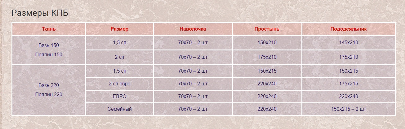 Детский комплект белья размеры