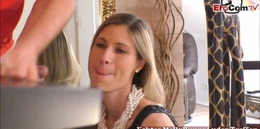Zwei deutsche Blondinen bei einer Orgie mit Sperma bedeckt