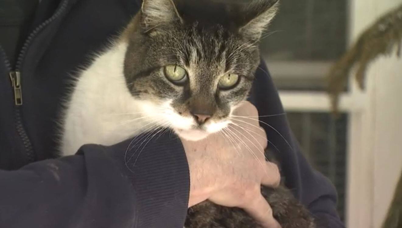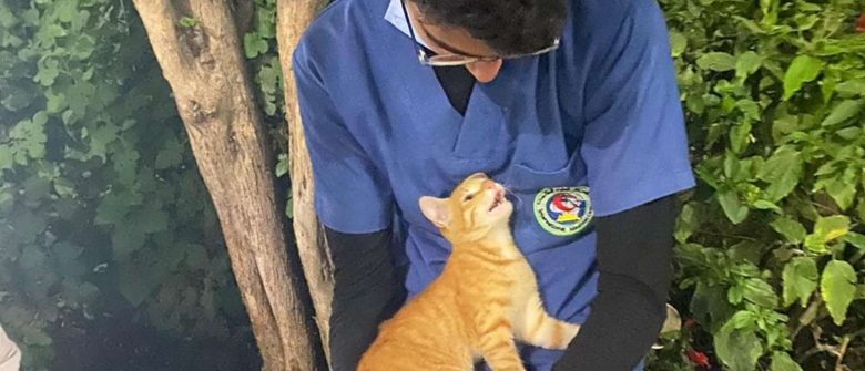 Deux aides-soignants inspectent une chatte