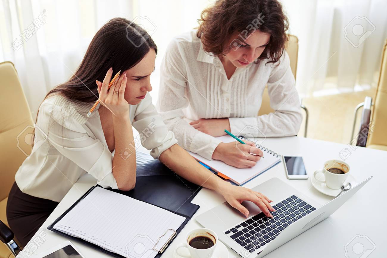Deux brunes travaillant ensemble