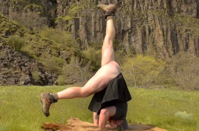 Contorsionniste avec deux bites