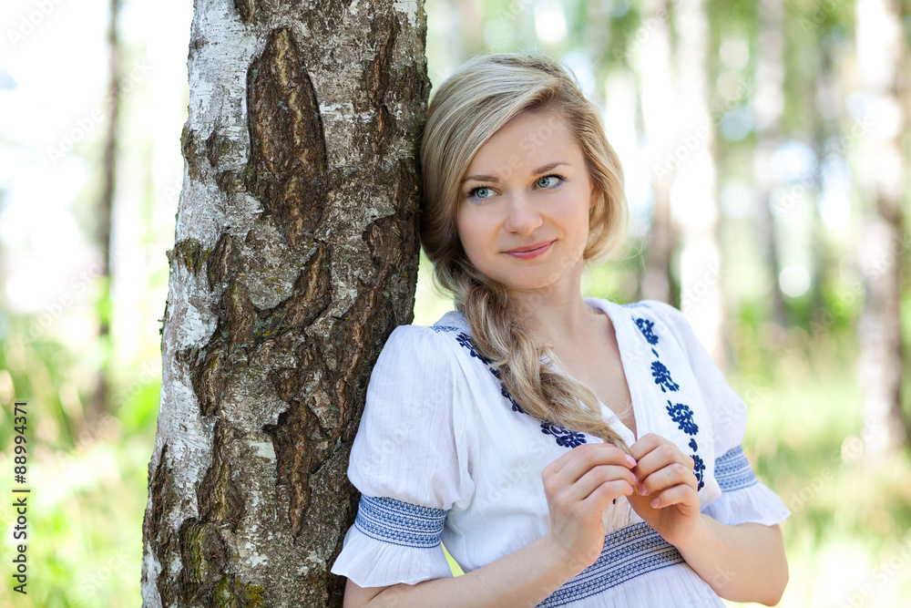 Деваха в берёзовой роще.
