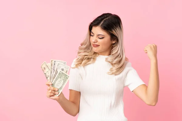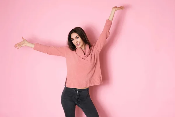 Забавная Девушка На Розовом Фоне — стоковые фотографии . . .