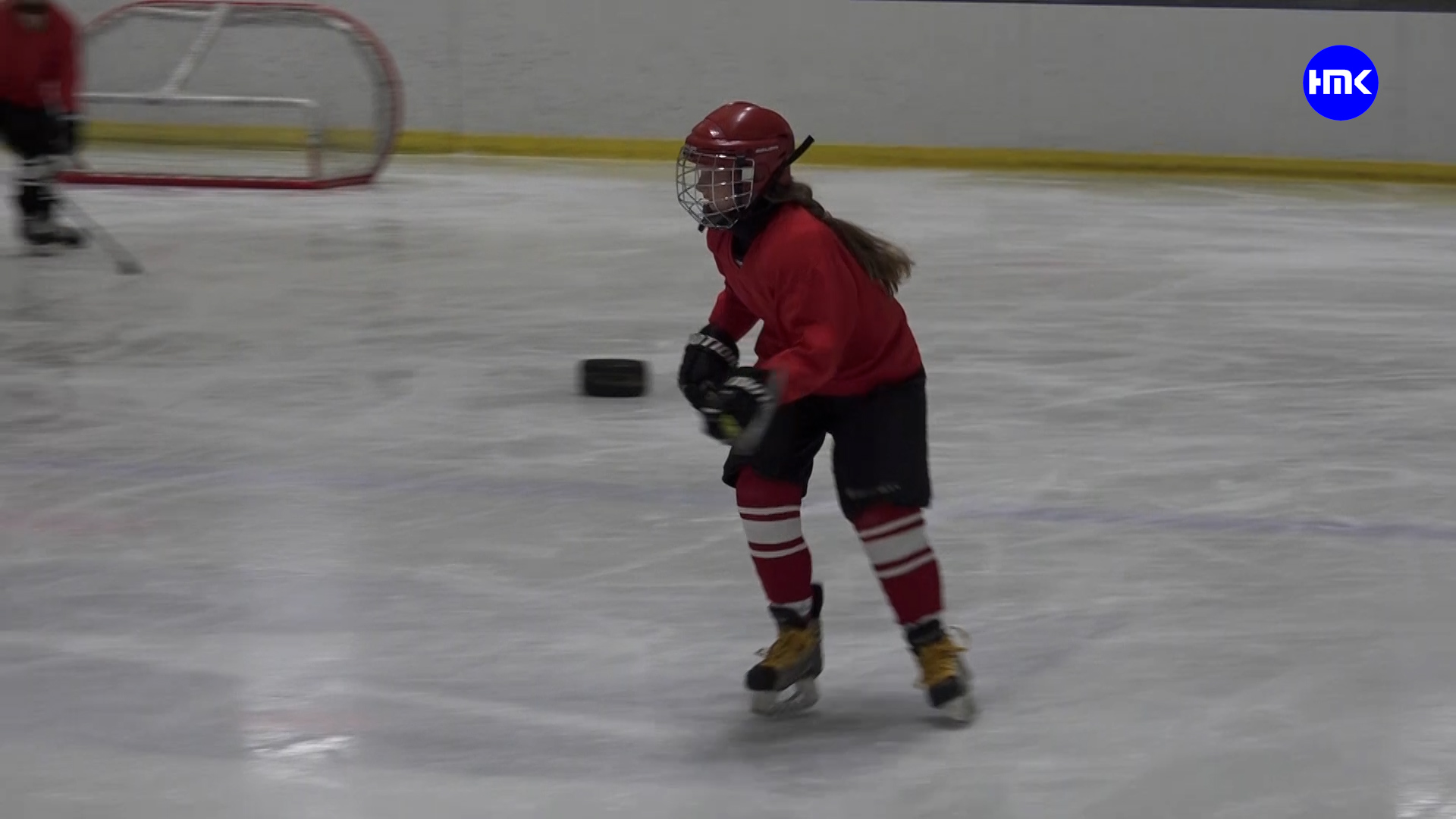 Девочка играет в хоккей