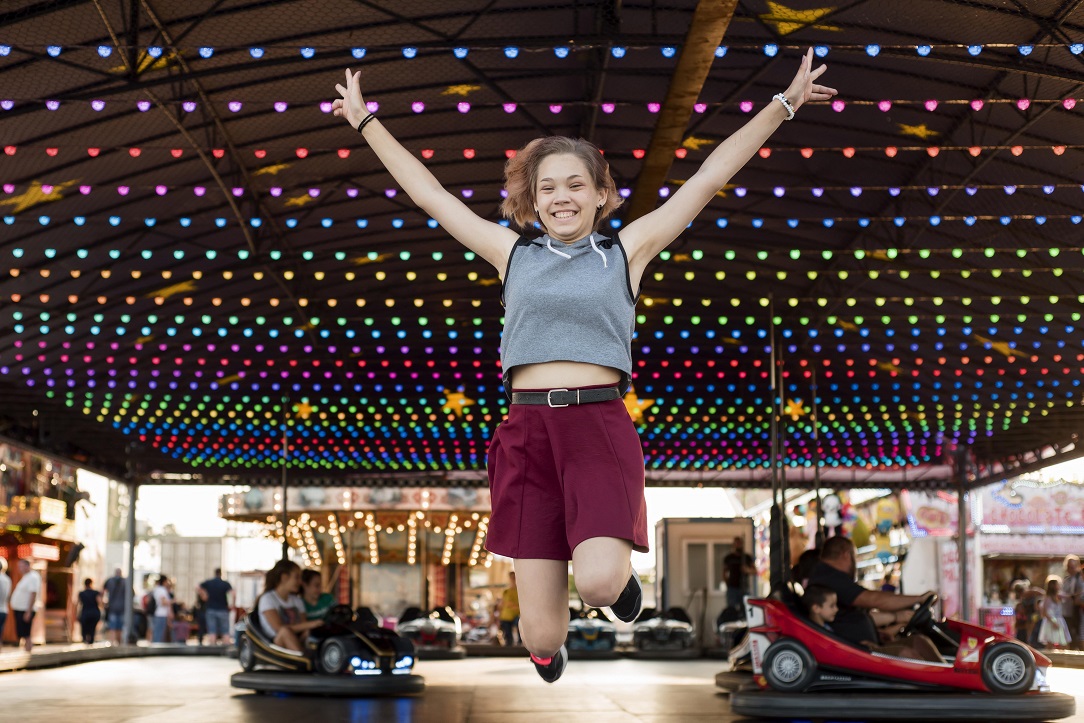Девочка в парке аттракционов