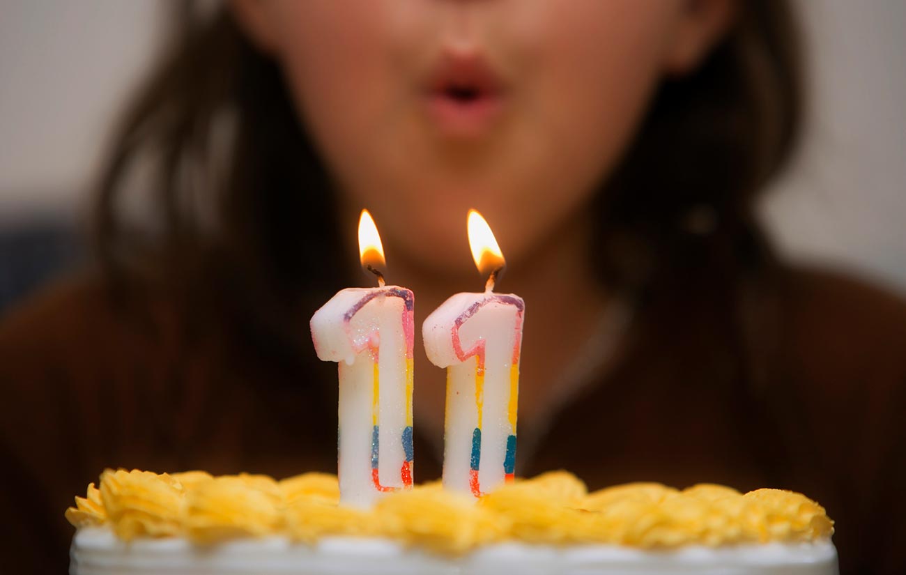 Девочка задувает свечу