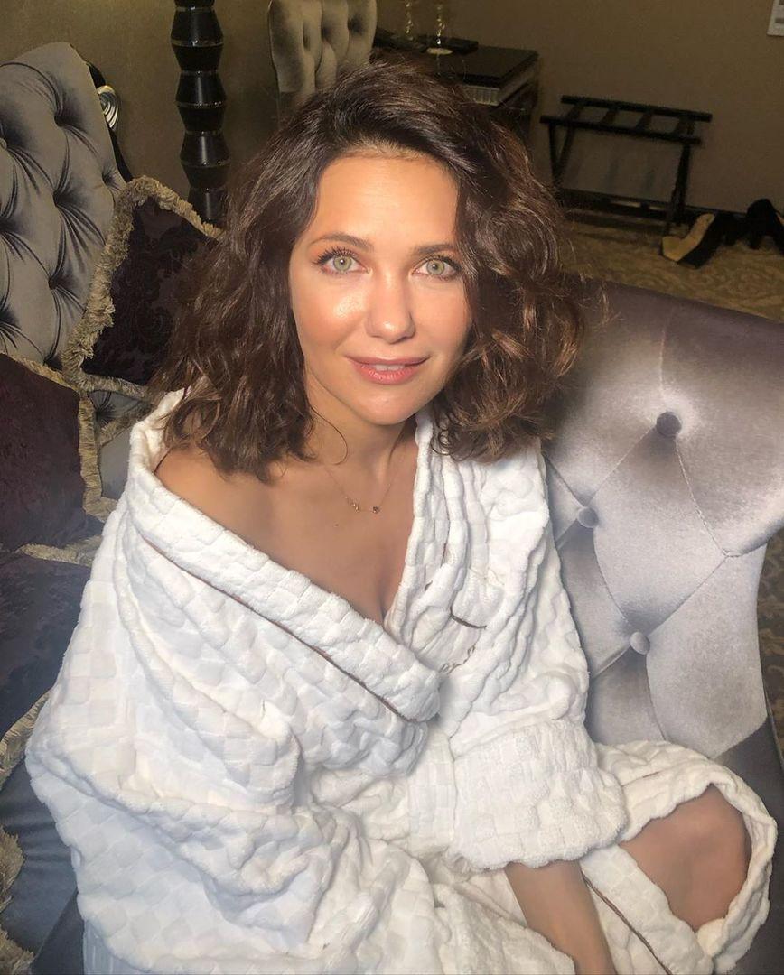 Девушка 18 лет в чулках и пеньюаре