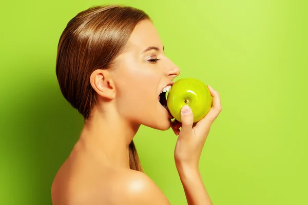 Топовая коллекция женщина с яблоком . девушка с яблоком . яблоко . девушка яблоко . диета . зеленое яблоко . женщина ест яблоко . девушка с фруктами . улыбка красивые зубы .