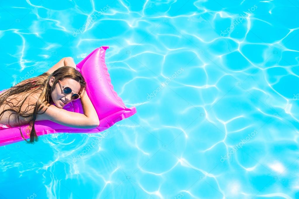 Девушка На Надувном Матрасе В Бассейне