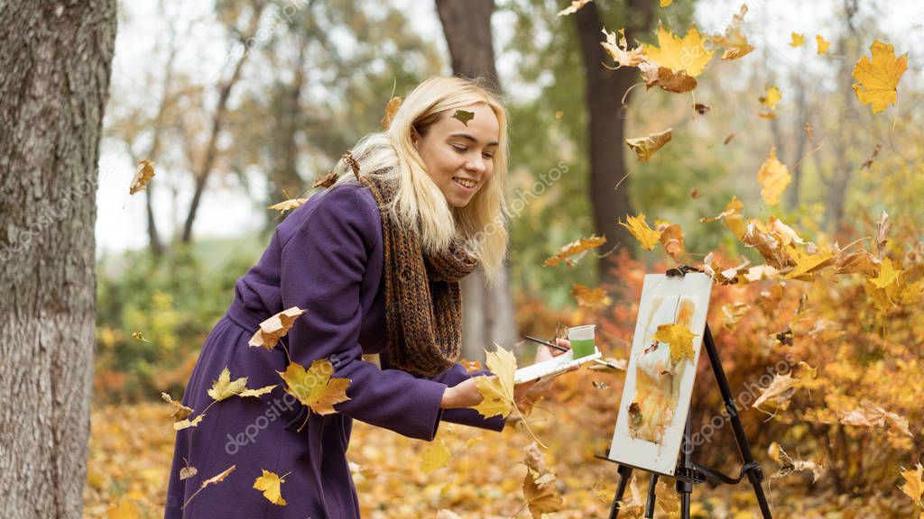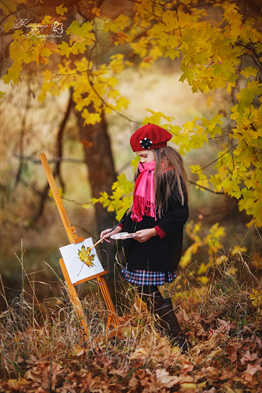Девушка Рисует Осень Художественное Фото