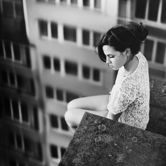 Девушка Сидит Черно Белое Фото
