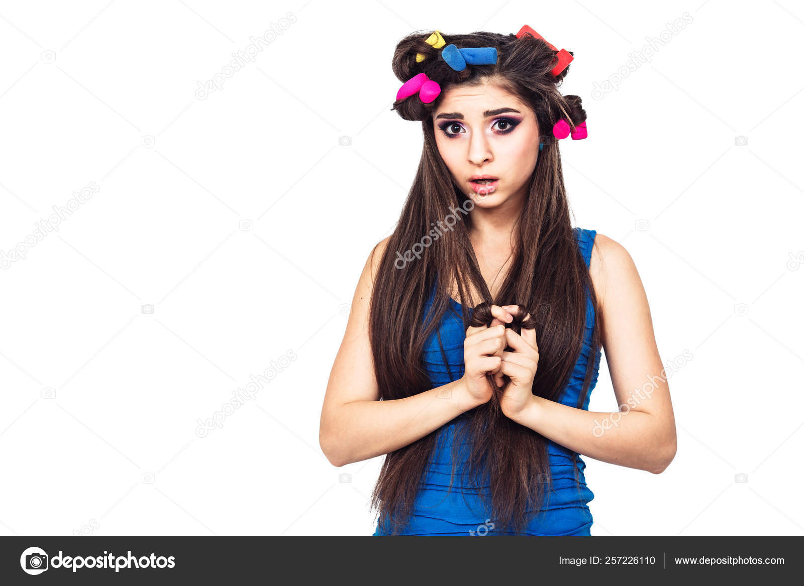 Скачай это Премиум Фото на тему Молодая русская женщина смотрит прямо вперед и открой для . . .